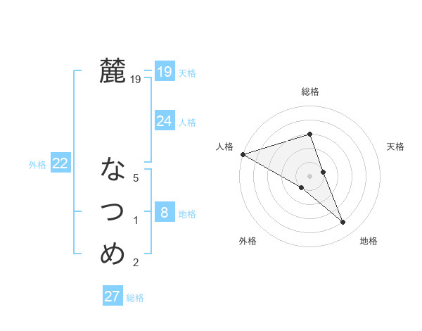 麓 なつめさんの地格は8画の4点!