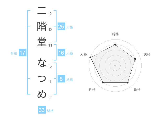 二階堂 なつめさんを姓名の画数から五運を鑑定