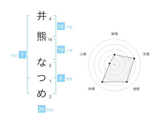 井熊 なつめさんを姓名の画数から五運を鑑定