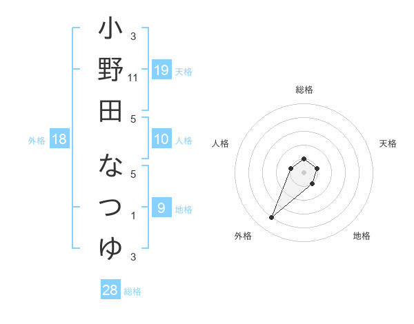 小野田 なつゆさんを姓名の画数から五運を鑑定