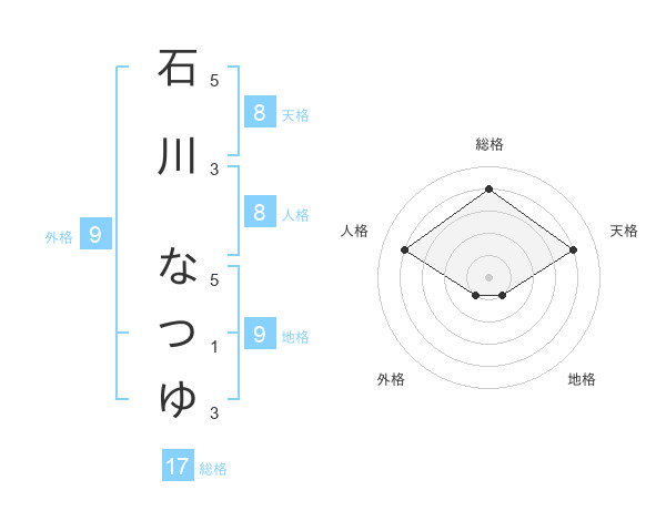 石川 なつゆさんを姓名の画数から五運を鑑定