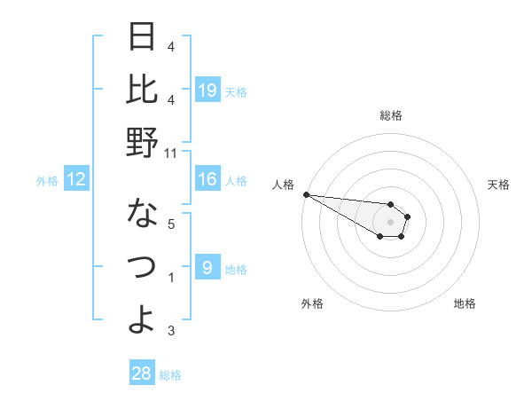 日比野 なつよさんを姓名の画数から五運を鑑定