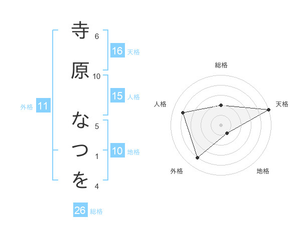 寺原 なつをさんを姓名の画数から五運を鑑定