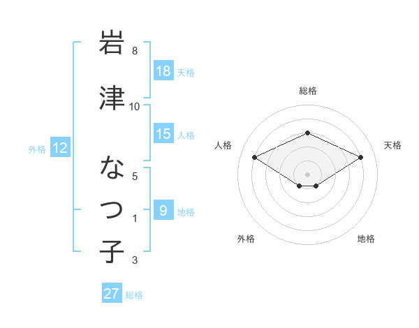 岩津 なつ子さんの天格は18画の4点!