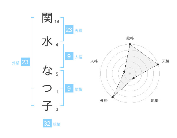 関水 なつ子さんを姓名の画数から五運を鑑定