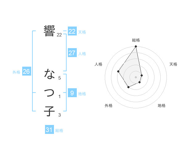 響 なつ子さんの総格は31画の5点!