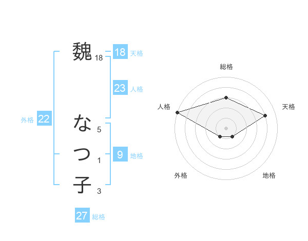 魏 なつ子さんを姓名の画数から五運を鑑定
