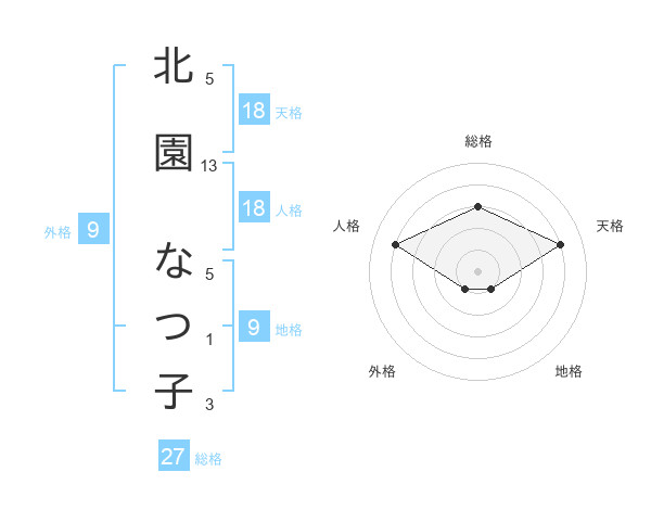 北園 なつ子さんを姓名の画数から五運を鑑定