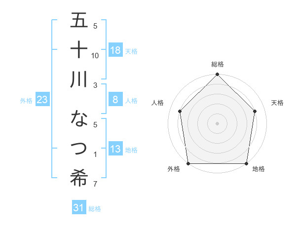 五十川 なつ希さんを姓名の画数から五運を鑑定