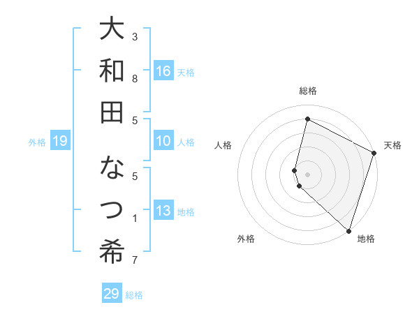 大和田 なつ希さんを姓名の画数から五運を鑑定