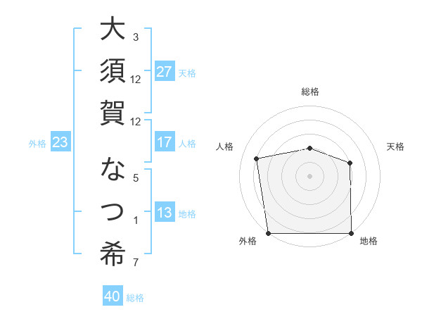 大須賀 なつ希さんの外格は23画の5点!