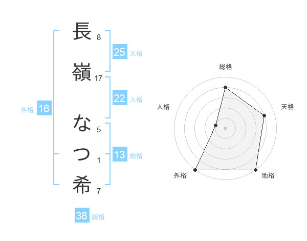 長嶺 なつ希さんの外格は16画の5点!