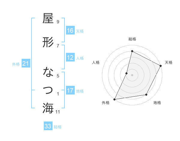 屋形 なつ海さんを姓名の画数から五運を鑑定