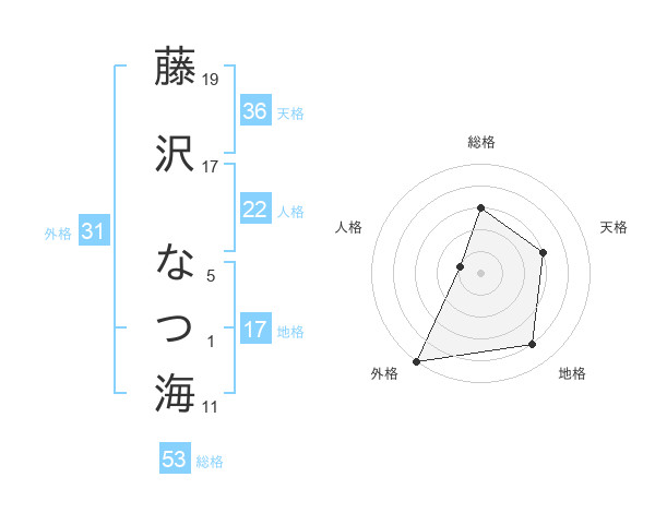 藤沢 なつ海さんの総格は53画の3点!