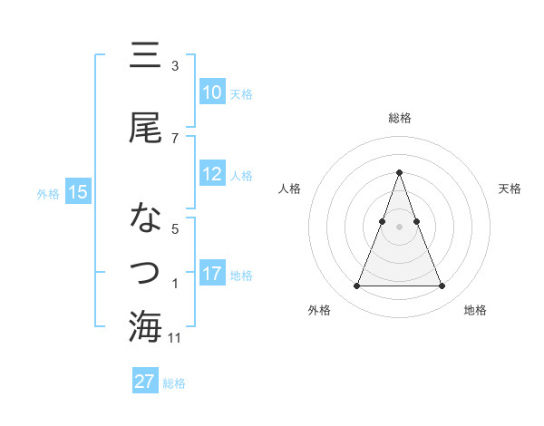 三尾 なつ海さんを姓名の画数から五運を鑑定