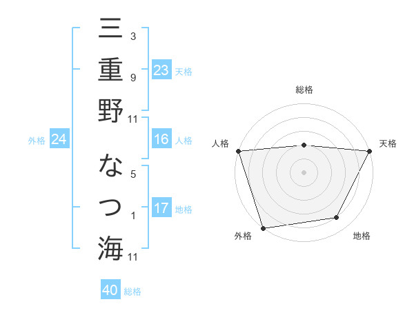 三重野 なつ海さんを姓名の画数から五運を鑑定