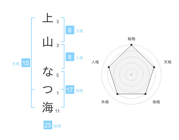 上山 なつ海さんを姓名の画数から五運を鑑定
