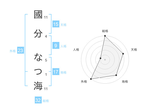 國分 なつ海さんを姓名の画数から五運を鑑定