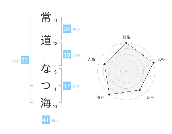 常道 なつ海さんを姓名の画数から五運を鑑定