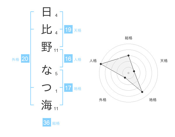 日比野 なつ海さんの地格は17画の4点!