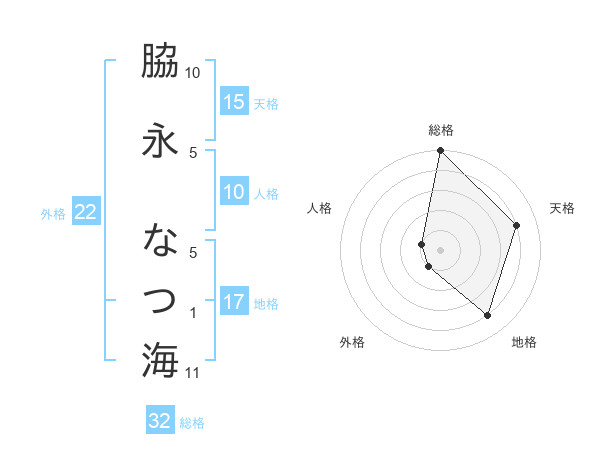 脇永 なつ海さんを姓名の画数から五運を鑑定