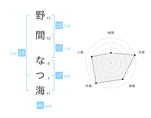 野間 なつ海さんを姓名の画数から五運を鑑定