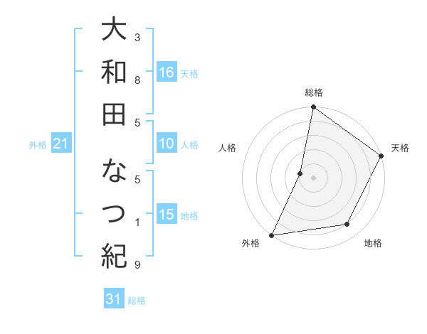 大和田 なつ紀さんを姓名の画数から五運を鑑定