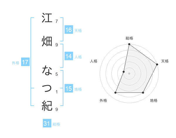 江畑 なつ紀さんの総格は31画の5点!