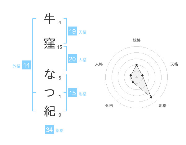 牛窪 なつ紀さんを姓名の画数から五運を鑑定