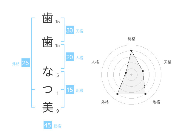 歯歯 なつ美さんの総格は45画の4点!