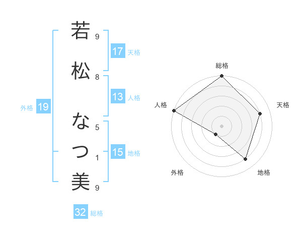 若松 なつ美さんを姓名の画数から五運を鑑定
