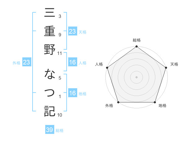 三重野 なつ記さんを姓名の画数から五運を鑑定