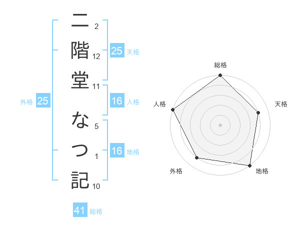 二階堂 なつ記さんの地格は16画の5点!