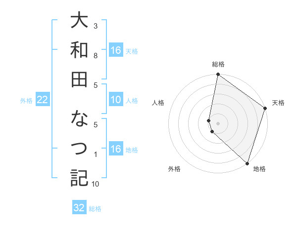 大和田 なつ記さんの総格は32画の5点