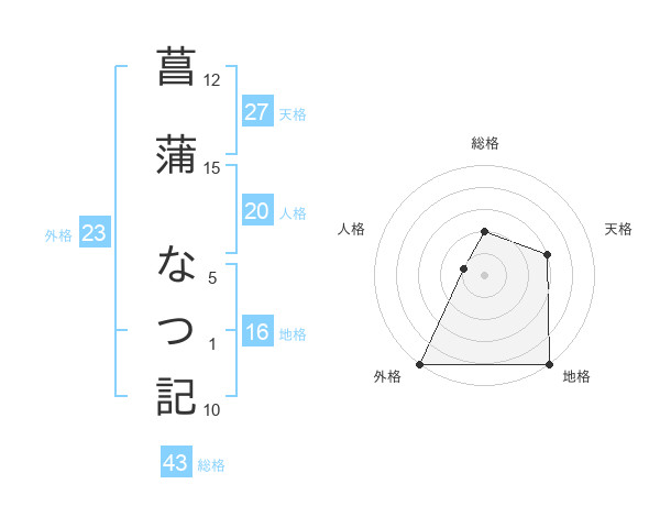 菖蒲 なつ記さんを姓名の画数から五運を鑑定