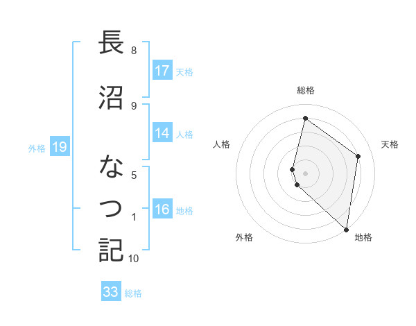 長沼 なつ記さんを姓名の画数から五運を鑑定