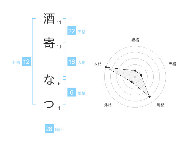 酒寄 なつさんを姓名の画数から五運を鑑定