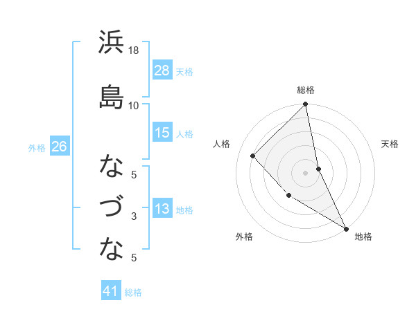 浜島 なづなさんを姓名の画数から五運を鑑定