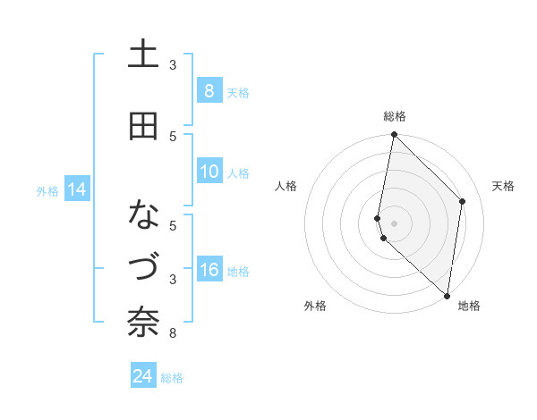 土田 なづ奈さんを姓名の画数から五運を鑑定