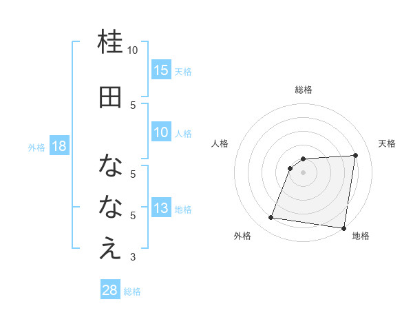 桂田 ななえさんを姓名の画数から五運を鑑定
