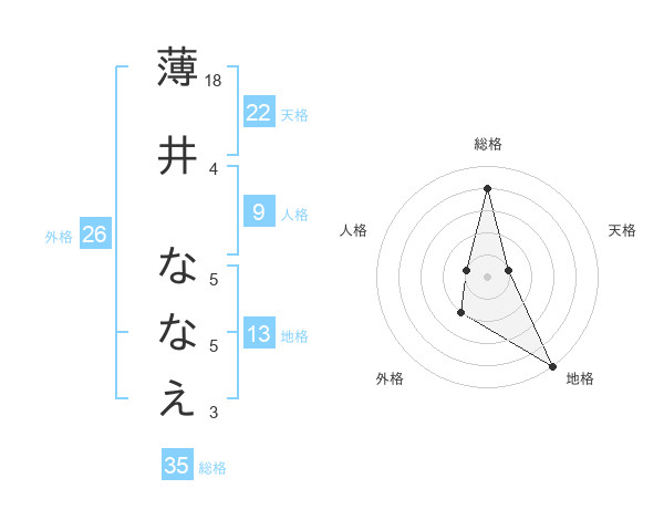 薄井 ななえさんを姓名の画数から五運を鑑定
