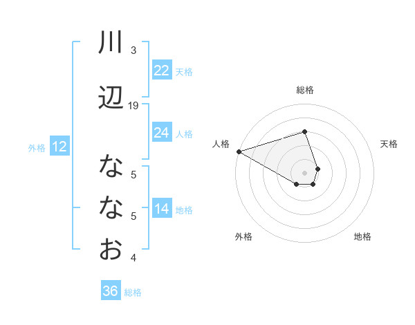 川辺 ななおさんを姓名の画数から五運を鑑定