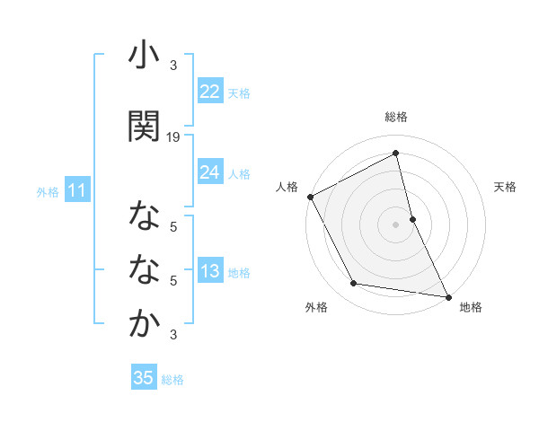 小関 ななかさんの総格は35画の4点!