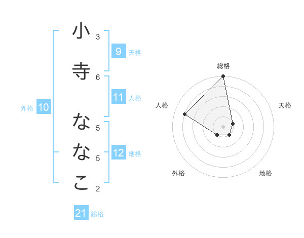 小寺 ななこさんを姓名の画数から五運を鑑定