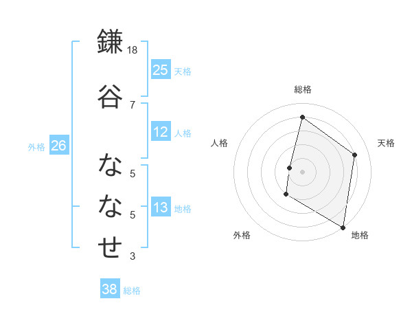 鎌谷 ななせさんの総格は38画の4点