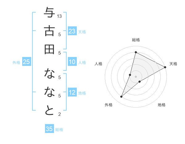 与古田 ななとさんの天格は23画の5点!
