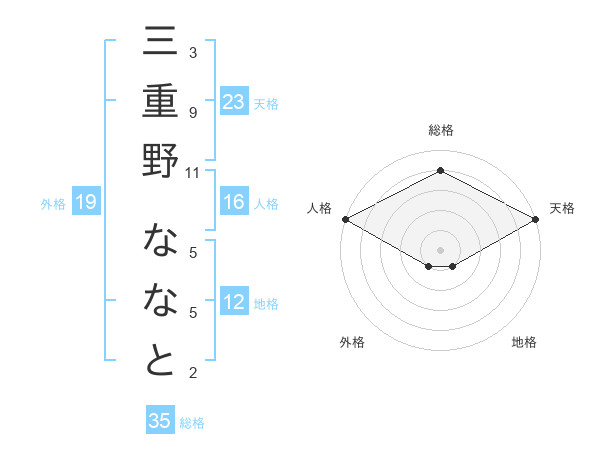 三重野 ななとさんを姓名の画数から五運を鑑定