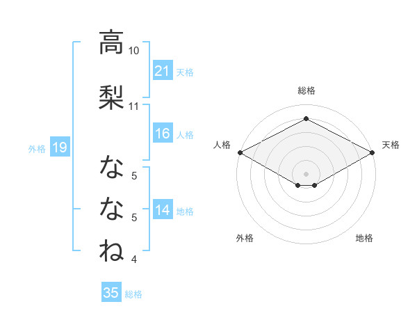 高梨 ななねさんを姓名の画数から五運を鑑定