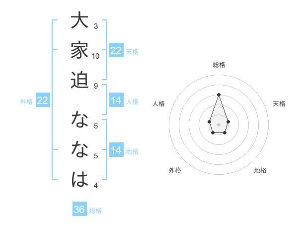 大家迫 ななはさんを姓名の画数から五運を鑑定