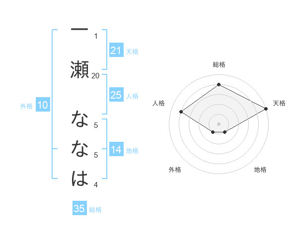 一瀬 ななはさんを姓名の画数から五運を鑑定